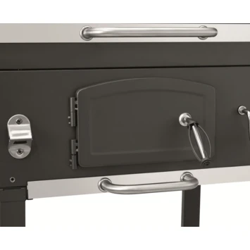 Deze American barbecue Jaxon van Jamestown heeft alles in huis voor een geslaagde barbecue. Het onderstel met 2 wielen zorgt ervoor dat je grilt op een comfortabele werkhoogte en dat je de barbecue gemakkelijk kan verplaatsen. De zijtafel (45×27 cm) zorgt dan weer voor extra werkruimte. De barbecue beschikt over een ruimte grillplaat in gietijzer van 58 x 42,5cm waarop je gemakkelijk voor 8 personen kan koken. De ingebouwde thermometer tot slot zorgt ervoor dat je je vlees steeds op de juiste temperatuur kan bereiden.