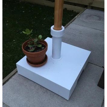 Met de Parasolvoet Wit Beton 35 kg kan je jouw parasol van maximaal Ø275 cm zeker overeind houden. Deze vierkante parasolvoet is gemaakt van wit beton en heeft een lengte en breedte van 40 cm en een hoogte van 39 cm. De voet is geschikt voor parasols met een stokdiameter tussen de 21 en 54 mm. Door de vorm heeft de parasolvoet een moderne uitstraling. Tevens in meerdere kleuren verkrijgbaar.