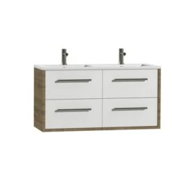 Tiger Reverse Meubelset 80 Cm Met 2 Lades Chalet Eik / Mat Zwart Inclusief Oval Wastafel Mat Zwart