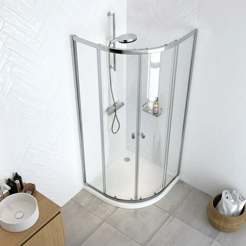 Raak verslingerd aan de items uit de Hooked serie. Deze kwartronde cabine met schuifdeuren van 90×90 cm kenmerkt zich door zijn hoogte van 200 cm én het gemak in onderhoud. Het 6 mm dikke heldere veiligheidsglas heeft een antikalklaag, zodat het glas ook langer helder blijft. Hooked dankt zijn naam aan de comfortabele greep die ook als haak gebruikt kan worden voor bijvoorbeeld je handdoek. Je hoeft dan niet meer uit je warme doucheruimte te stappen.
