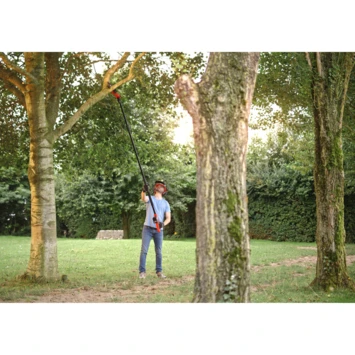 De „20V Max” (18V) SKIL 0650 is een telescopische accuzaag voor het zonder ladder snoeien van hoge, moeilijk bereikbare takken. Deze telescopische zaag is uitgerust met een 20 cm zwaard en ketting om de klus gemakkelijk te klaren. De kettingspanning kan binnen enkele seconden worden aangepast, zonder dat hiervoor gereedschap nodig is, en de ketting wordt automatisch gesmeerd. Deze tijdsbesparende functies stellen u in staat zich meer te richten op uw zaagklussen. De draaibare snijkop met 8 posities maakt veelzijdig zagen en snoeien mogelijk. De 0650 wordt geleverd met een verlengsteel die het gereedschap naar een volledige lengte van 3 meter verlengt en kan worden verwijderd voor compact opbergen na gebruik. Bovendien is de telescopische zaag uitgerust met het SKIL „Easy Storage”-ontwerp voor netjes opbergen van uw tuingereedschap. De SKIL 0650 CA wordt geleverd met een verlengsteel, kettingzwaardbeschermer, schouderriem, „Easy Storage”-haak en „U link”.